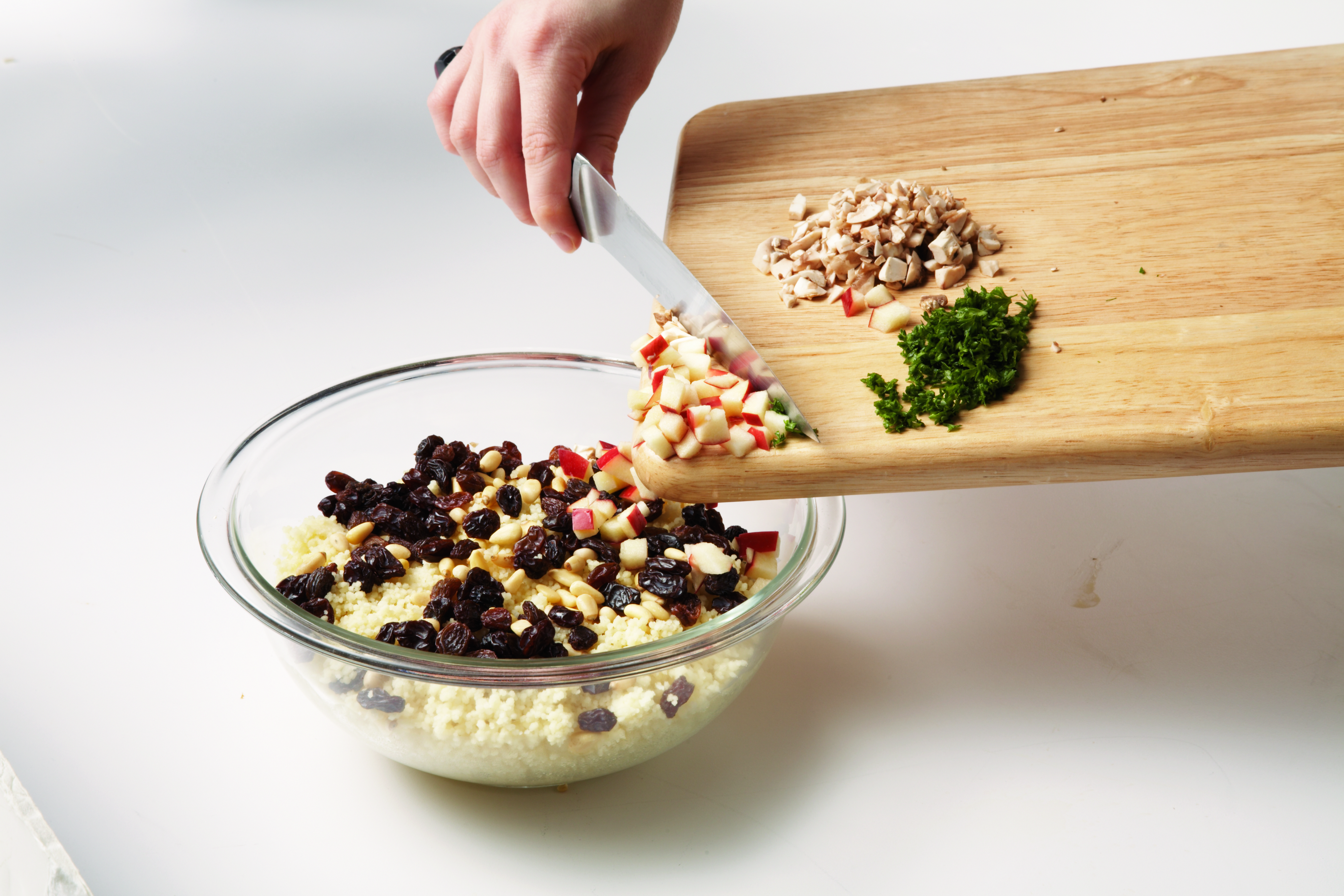 Couscous is a great lower calorie grain to add to the table, either in place of brown rice, as a base for roasted. Couscous is a berber dish of small (about 3 millimetres (0.12 in) in diameter) steamed balls of crushed durum wheat semolina that is traditionally served with a stew spooned on top. In salads, stews and soups, couscous is probably one of the most versatile and simple grains to add to your daily menu, and you don't even need a pan! (though couscous may be made from other kinds of flours; It is mostly made in factories these days: